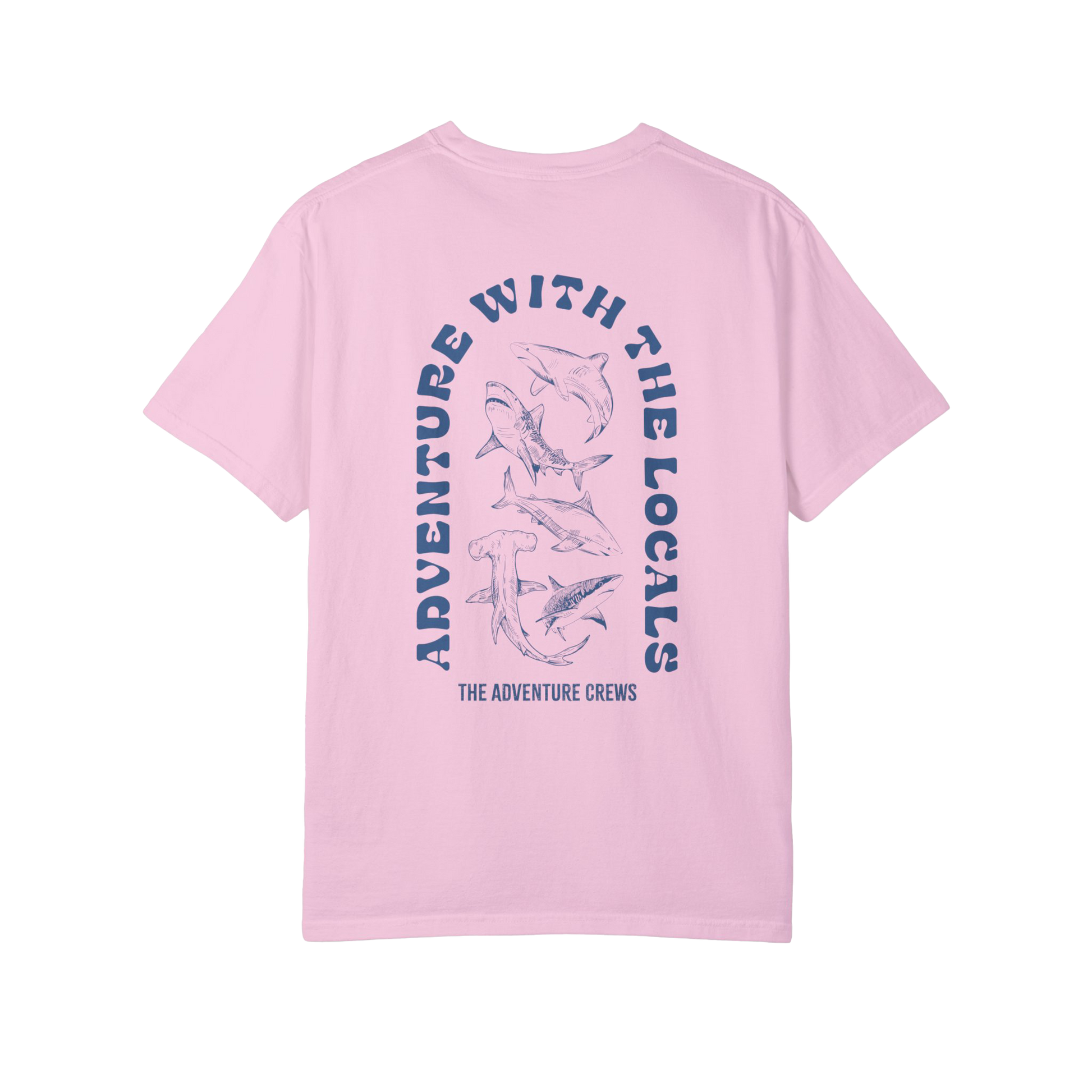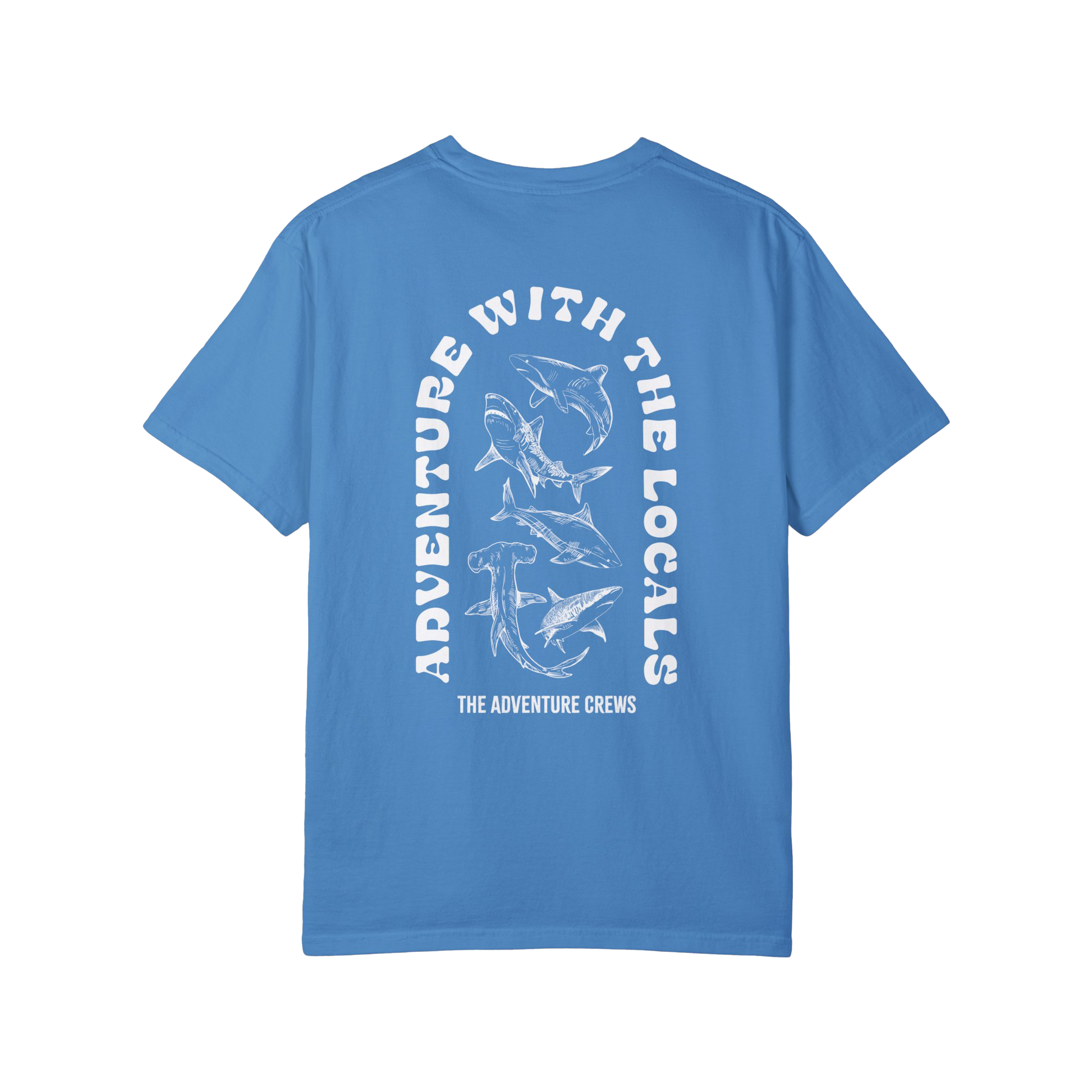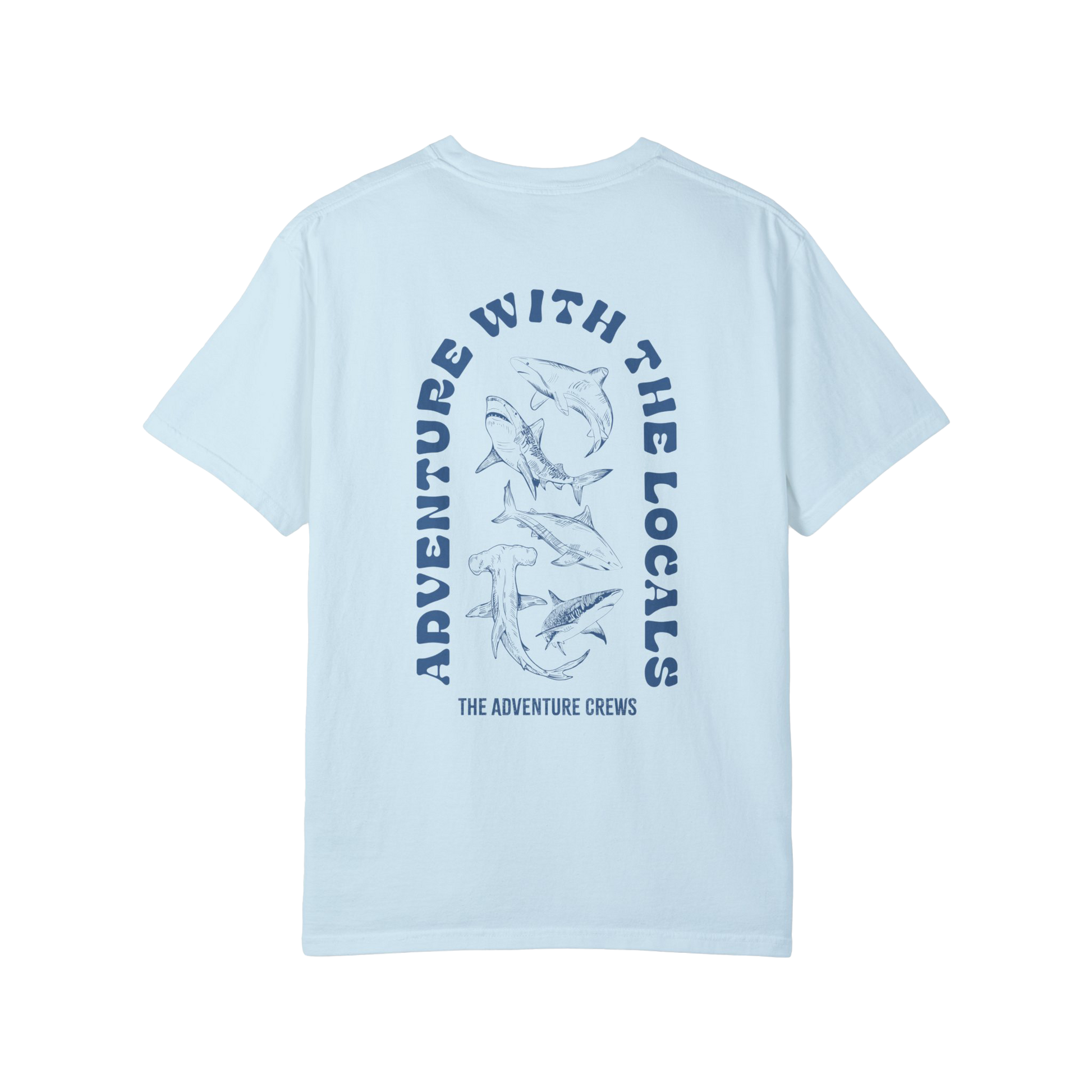 Inspired by the sharks of the Bahamas, this shirt features the six most common sharks found in the Caribbean blue Bahamas waters, most of which we have encountered during our travels. The Bahamas is one of the best places in the world to dive with sharks because of the warm, clear waters and the sheer number of sharks there, you can dive with sharks any time of year. This classic unisex jersey shirt fits like a well-loved favorite, featuring a classic crew neck, long sleeves, superior combed, and ring-spun jersey cotton.
